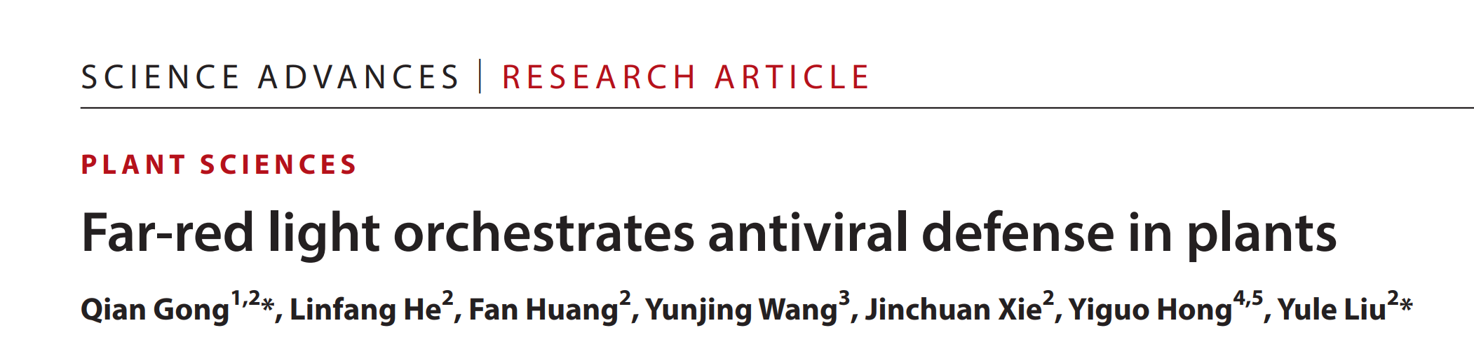 Science Advances |北京大学龚骞课题组与清华大学刘玉乐课题组合作揭示远红光调控植物抗病毒免疫的新机制2025-11-20 -