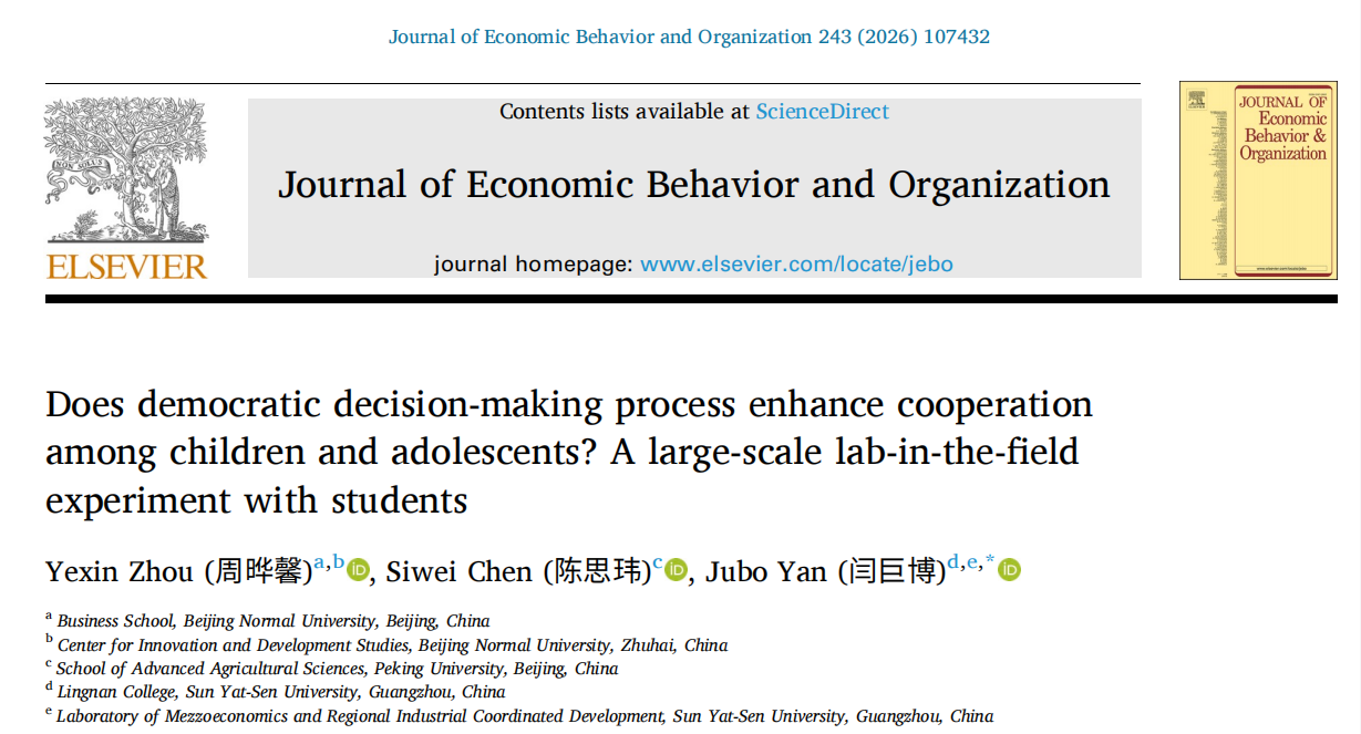 研究成果 | 刘承芳教授团队博士生陈思玮在Journal of Economic Behavior & Organization上发文 -