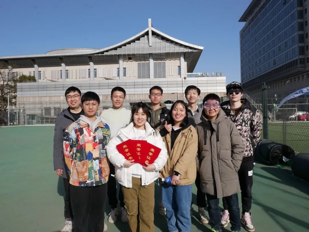 这个项目要求每队派出4人,每两个人的一条腿相互捆绑,从一方底线走到另一方底线,按照每队用时长短进行排名。伴随着开赛的哨声和整齐划一的口号,大家紧挽双臂,有条不紊地前进。最终,碱基互补配对队、WT联队、啊对对队获得了第一名、第二名、第三名。