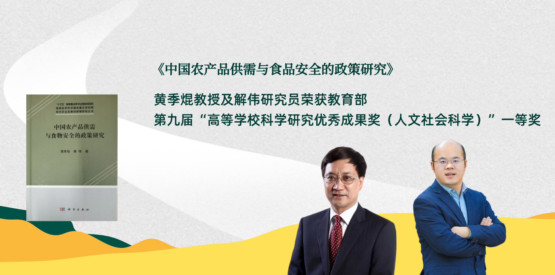 黄季焜教授及解伟研究员荣获教育部第九届“高等学校科学研究优秀成果奖(人文社会科学)”一等奖2024-08-02 -