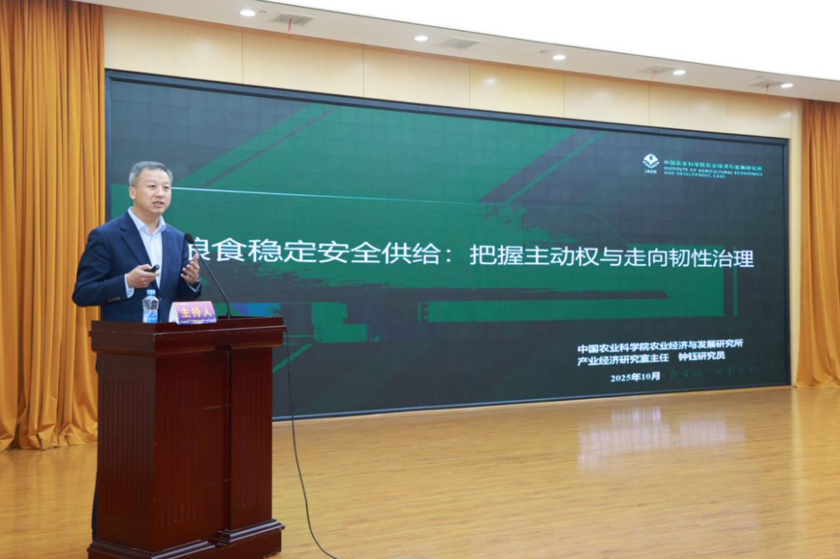 下午,会场共设置三个专场及三个平行论坛,专场一由北京大学现代农学院黄开兴研究员、江西财经大学农业农村现代化研究院院长周应恒教授主持。聚焦“人工智能+农业农村发展”主题,长江学者特聘教授、河南农业大学经济管理学院马恒运教授,华南农业大学国家农业制度与发展研究院执行院长、经济管理学院胡新艳教授,南京财经大学教务处处长、经济学院朱红根教授分别以《新质生产力:战略VS战术》《农地撂荒对粮食安全的影响:基于边际变化及时空反馈的考察》《数字乡村建设赋能农业新质生产力的理论与效果》为题作专场报告。参会专家也围绕《面向“十五五”粮食安全与多元化食物供给》开展专题研讨。