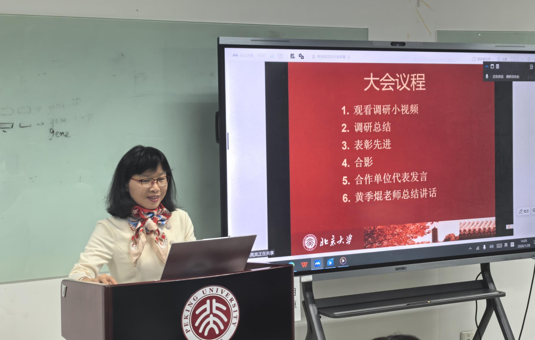 2026年1月28日下午,北京大学现代农学院“中国乡村振兴战略智库数据库建设”项目总结暨表彰会在北京大学王克桢楼454会议室召开,北京大学现代农学院院长、新农村发展研究院院长黄季焜教授,北京大学现代农学院副院长、中国农业政策研究中心副主任刘承芳教授等调研项目负责老师出席会议,100余位参加本次调研的教授、研究员、博士后以及优秀调研员代表通过线下或线上渠道参会,会议由刘承芳教授主持。