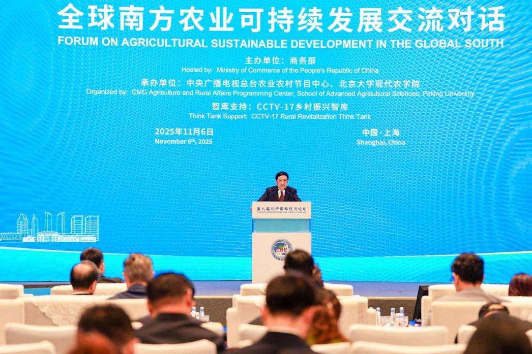 2025年11月6日,在第八届中国国际进口博览会隆重召开之际,由商务部主办,中央广播电视总台农业农村节目中心与北京大学现代农学院承办的第八届虹桥国际经济论坛“全球南方农业可持续发展交流对话”分论坛在上海国家会展中心成功举办。论坛汇聚了来自全球的20余位高级别嘉宾以及300多位国内涉农机构和企业代表,共同围绕全球南方农业可持续发展面临的挑战与合作路径开展深入交流。北京大学副校长、中国科学院院士朴世龙出席论坛并致辞。